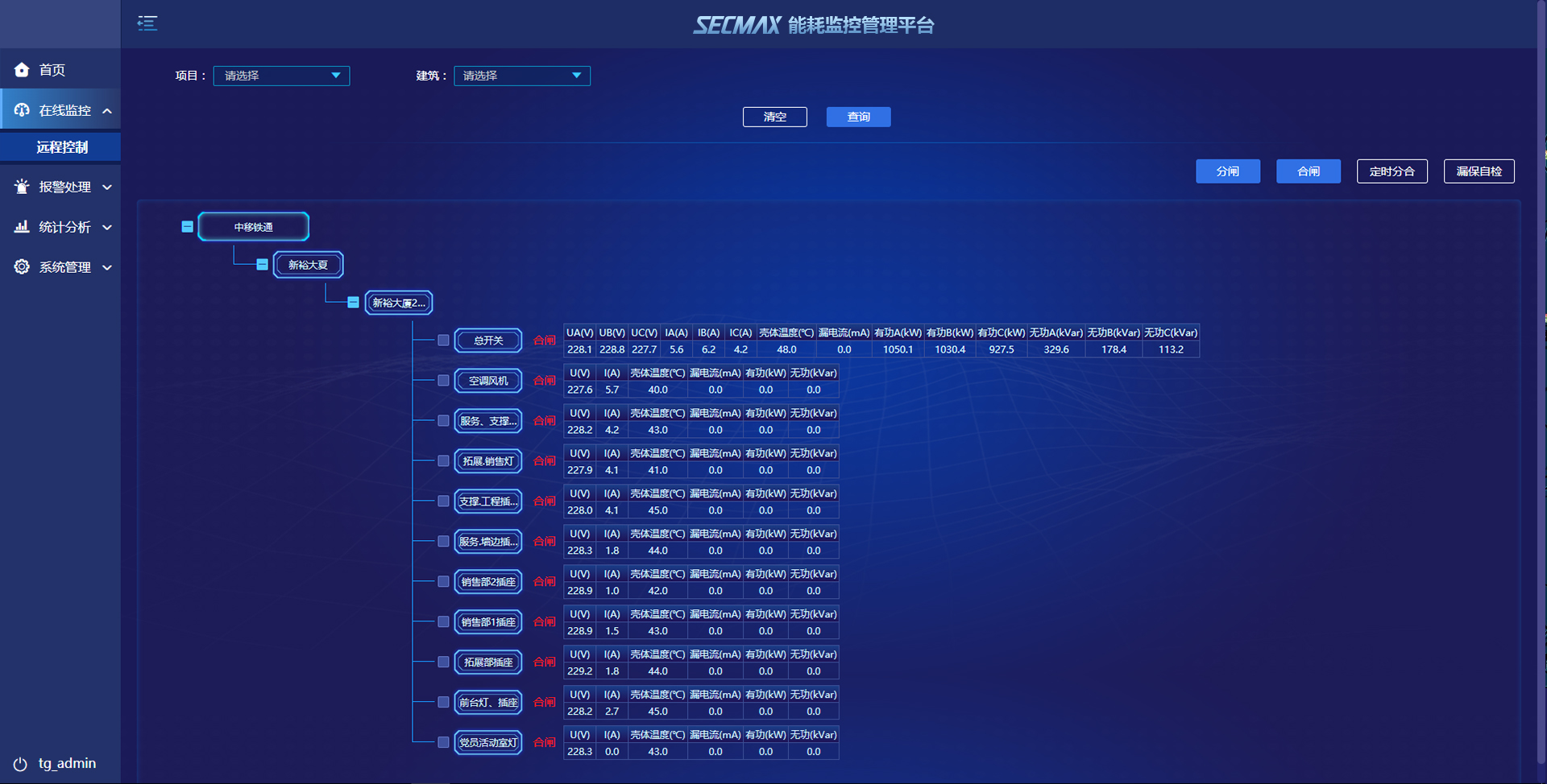 遠(yuǎn)程在線監(jiān)控各設(shè)備能耗狀況
